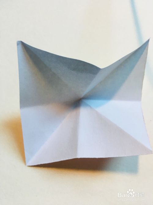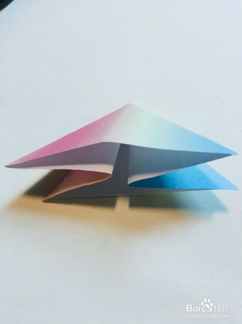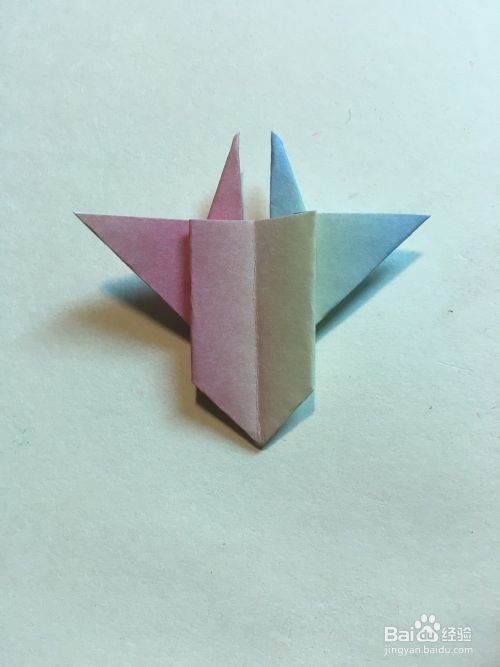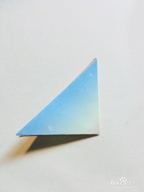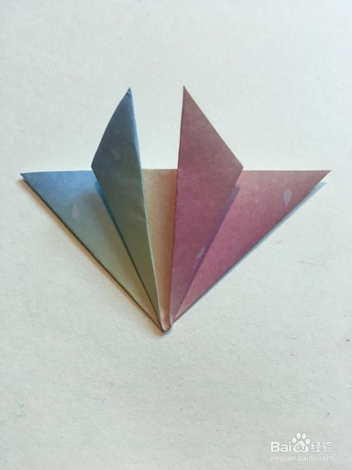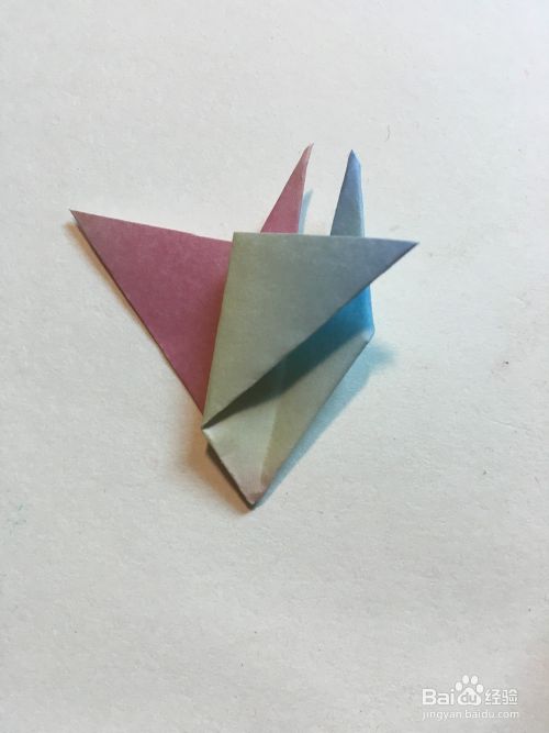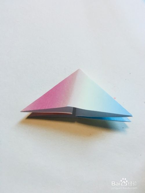 翻过来,将一边向里曲折一部分三角形,另一边也用同样的方法折好。