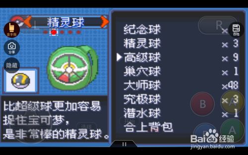 接着打开背包,使用精灵球捕捉;