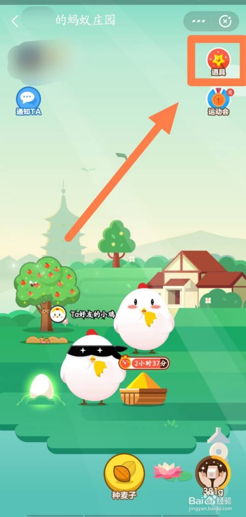 点击好友庄园右上角的“道具”