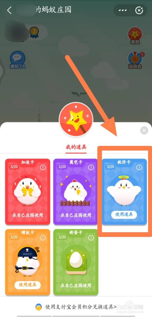 3.“道具”——“救济卡”——“确定”