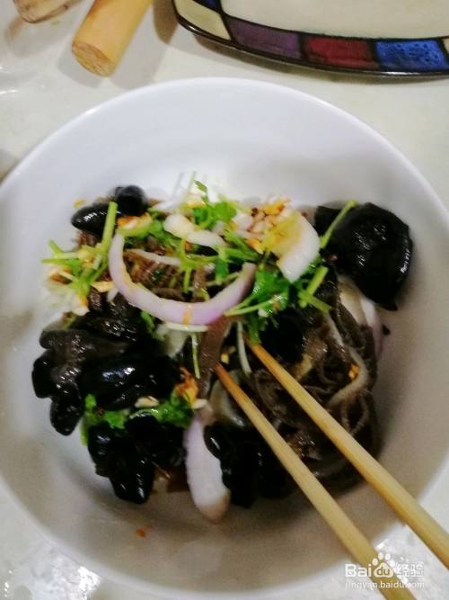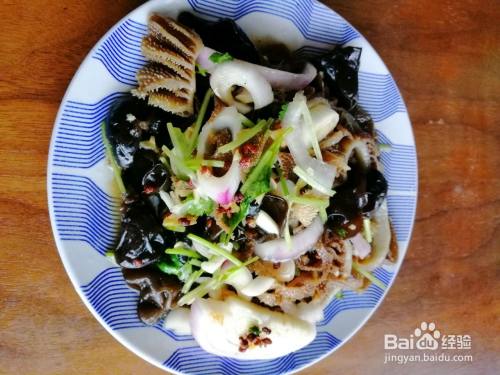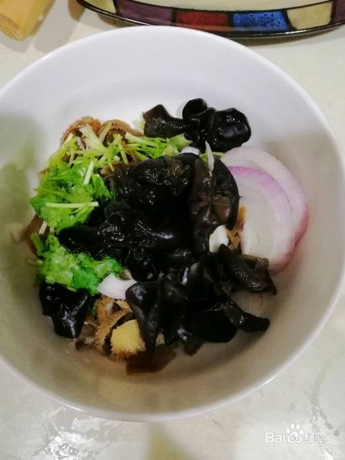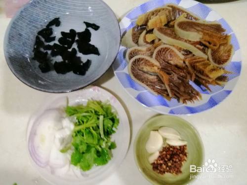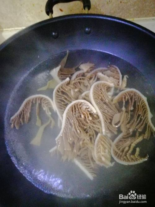 牛肚放开水中30秒焯熟,木耳放开水中3分钟焯熟