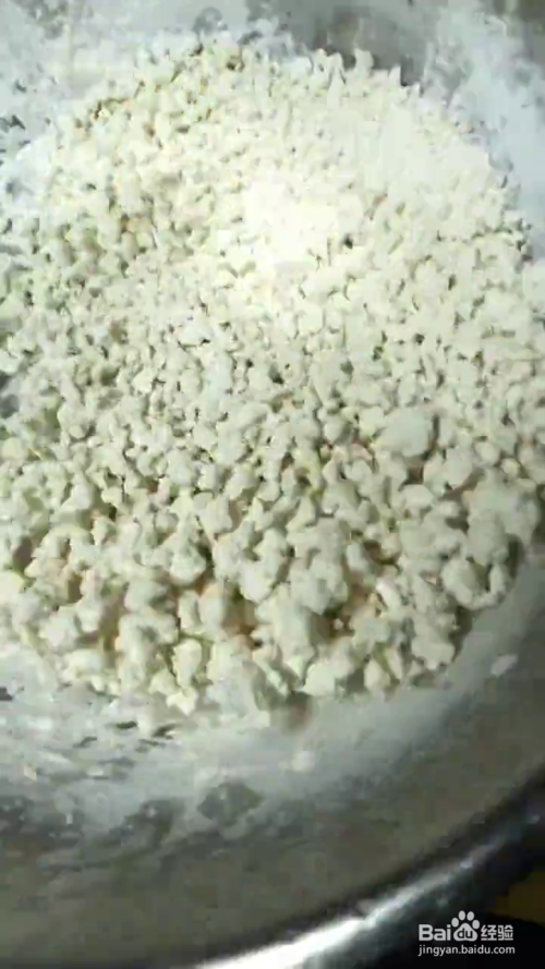 首先盆中准备白面吃多少放多少,准备把空矿泉水瓶,然后把这个盖上扎几个小眼儿,灌上水之后,边挤压矿泉水瓶边晃动盆中的面一点一点地形成小疙瘩
