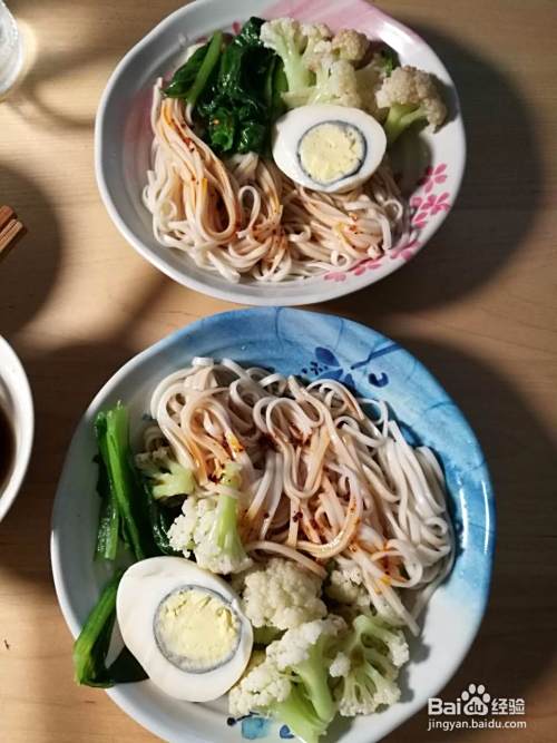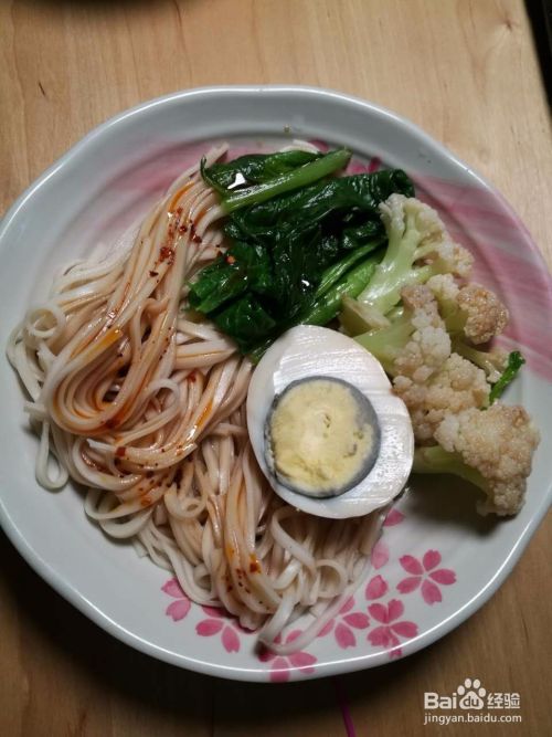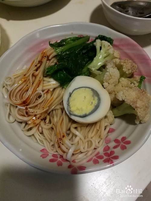 把面条盛到碗或盘中,浇上酱油醋汁和辣椒油,配上蔬菜即可。鸡蛋可以煮熟或是下面条的时候做成荷包蛋。