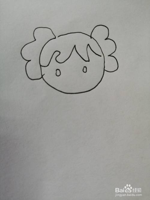 第三步,然后把乖巧的小女孩的眉毛和眼睛画出来,小女孩的眼睛又大又圆,样子非常可爱。