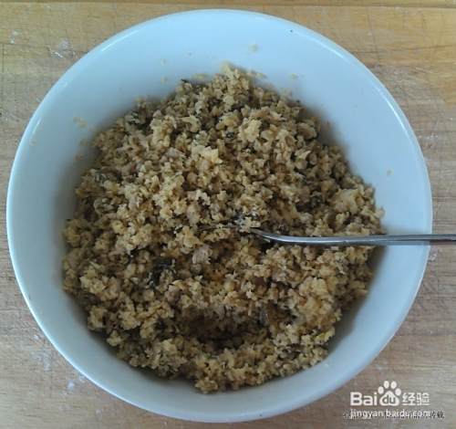 起油锅,加入适量的油,先倒入冬笋末煸炒,待冬笋末断生后,倒入雪菜末一起翻炒,再倒入肉末炒至肉末变色,淋入少许生抽调味,翻拌均匀,盛出晾凉备用;