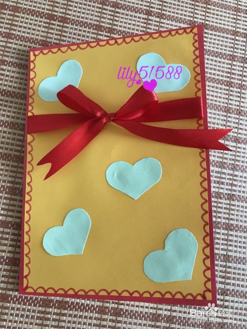 最后把爱心粘在橙色纸的上面,就全部做完成了。