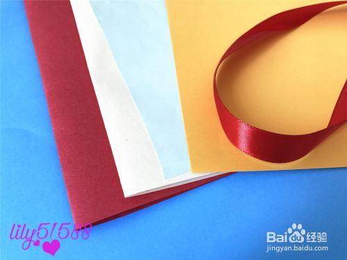 准备好彩色纸,红色、淡黄色、橙色、淡绿色,红色丝带1条。