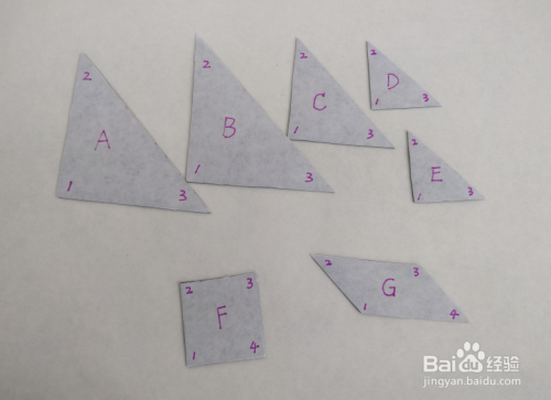 为了方便叙述,对每个形状用字母进行标注,每个形状的顶点用数字进行标注。具体标注如图。