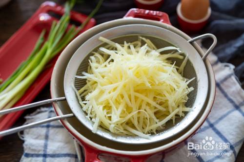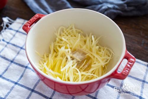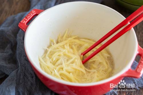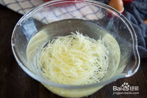 土豆擦丝,倒入清水中洗净淀粉