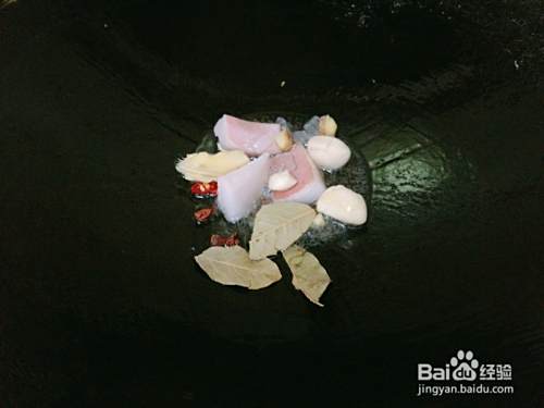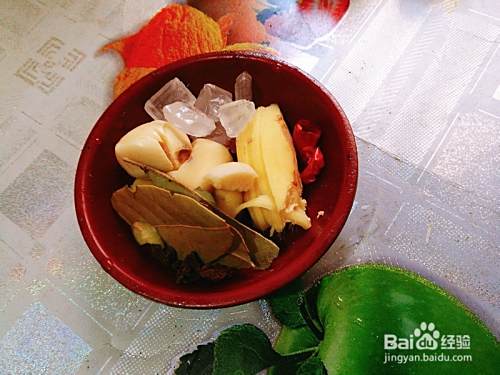 再把生姜去皮切成片,大蒜去掉皮就好,香叶,八角用水冲洗一下,都放在一起备用。