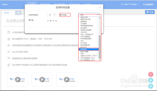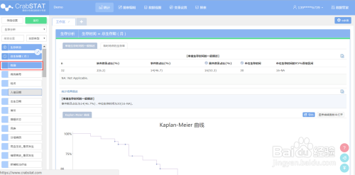 在网页左边是“变量列表”区域,该区域显示的是数据的变量名。Demo数据自带了“总生存期”(Overall Survival, OS)这个变量,在用户自己的数据中,可以通过(死亡/生存日期-入住日期)计算得到。