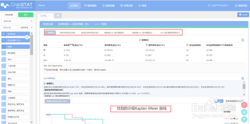 如果要进行生存时间的比较,可以在列表区域选择某个分类变量,如“性别”。选择后,该变量也会置顶。