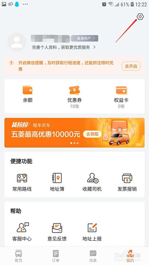 打开货拉拉,在我的页面点击右上角的设置图标;