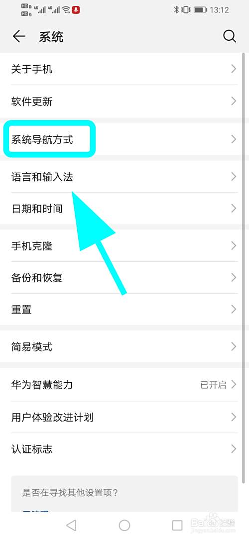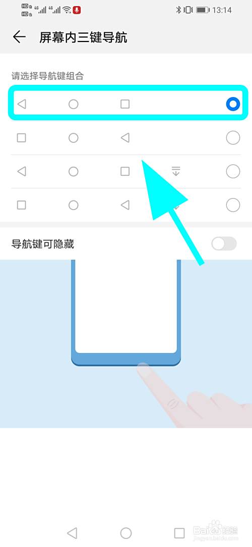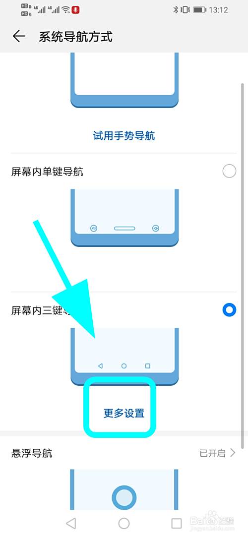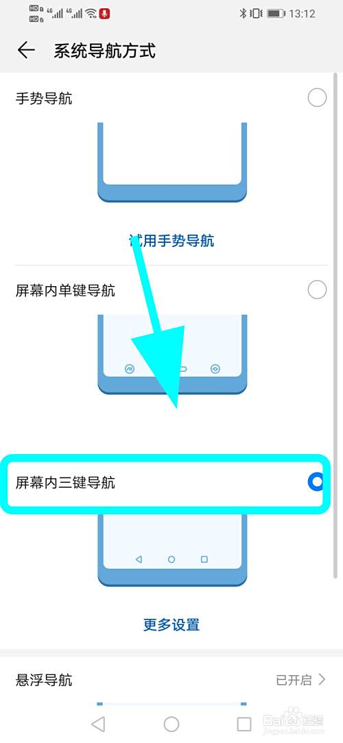 进入导航方式菜单,找到并选中【屏幕内三键导航】;