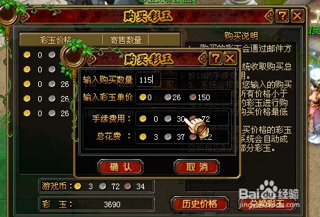 点击后又会出现一个小对话框,在上面输入想购买彩玉的数量,点击确认即可。
