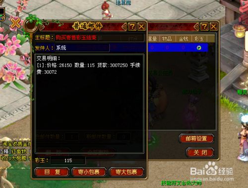 购买完成之后,彩玉会以邮件的方式给您发送来,只需要点击右上角邮件图标,双击给您发送的邮件,即可得到您所购买的彩玉。