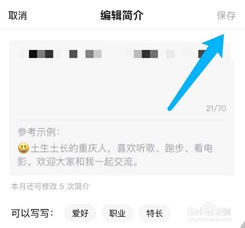 西瓜视频想要编辑简介,怎么办呢?本经验分享西瓜视频如何编辑简介,每月可编辑五次,字数限制在70字以内,可以写爱好、职业以及特长。