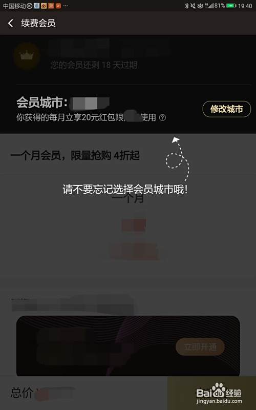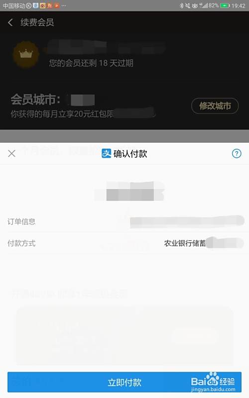 再进行所在城市的修改,修改完成之后,点击“去支付”,直接进行支付即可。这样之后,五折的饿了么超级会员就开通成功了。