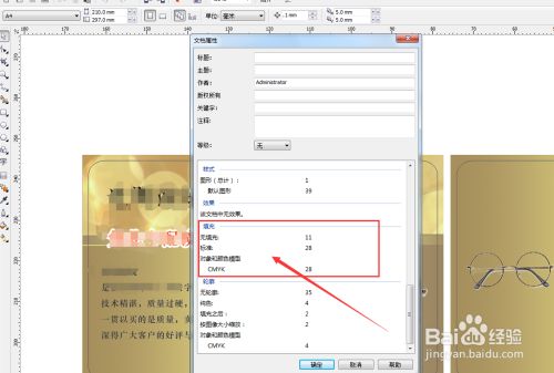 弹出文档属性框,下滑找到填充,可以看到对象及颜色模式,这样就可以看到文件内是否有rgb填充色,如图