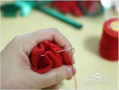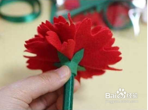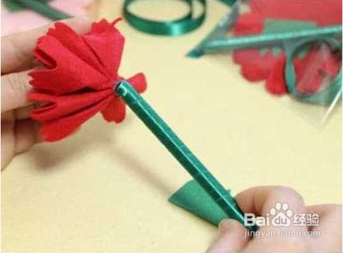 准备材料,将不织布剪出下面的花瓣4片,花托一片。