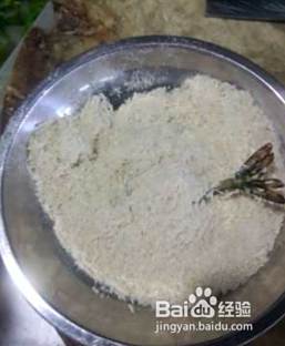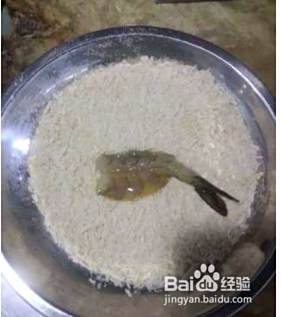先把基围虾放在玉米淀粉里,在放在鸡蛋里。在把基围虾放在面包糠里,把面包糠盖住基围虾轻轻的拍一下。