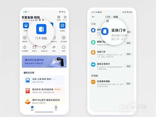 从手机中开启钱包app,选择门卡钥匙,点击实体门卡右边的添加按钮,并将门卡靠近NFC区域。