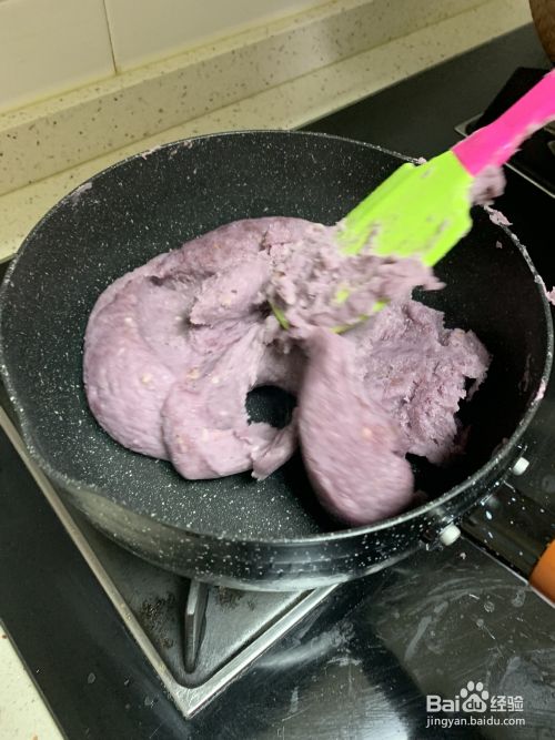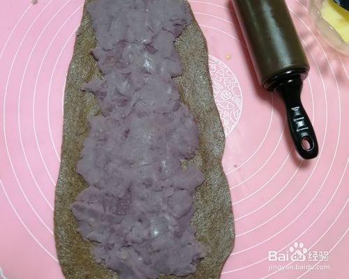 发酵后,用手揉搓10分钟,最后将面团擀成蛇形。把炸芋头泥放在上面。如果你觉得干燥,你可以在手上放些水。