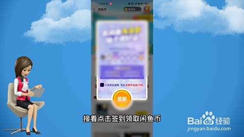 然后点击互动权益下方的领闲鱼币,接着点击签到领取闲鱼币。