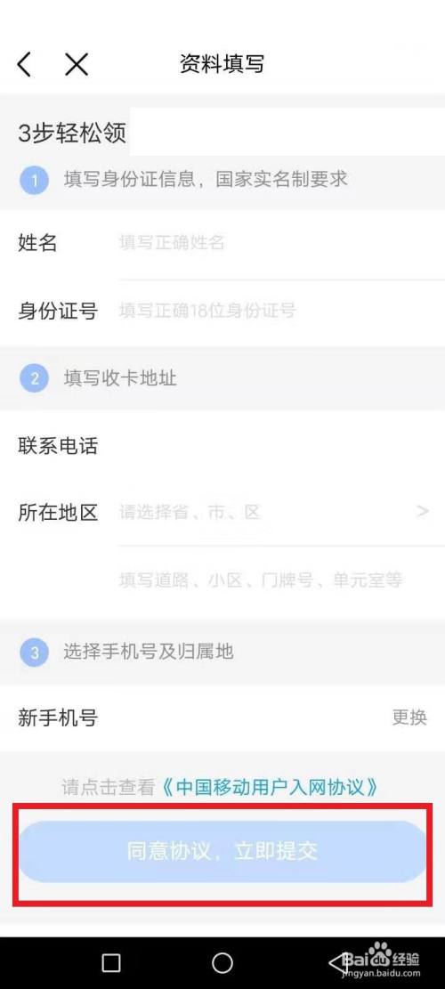 中国移动手机卡在线办理步骤如下: