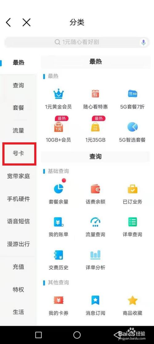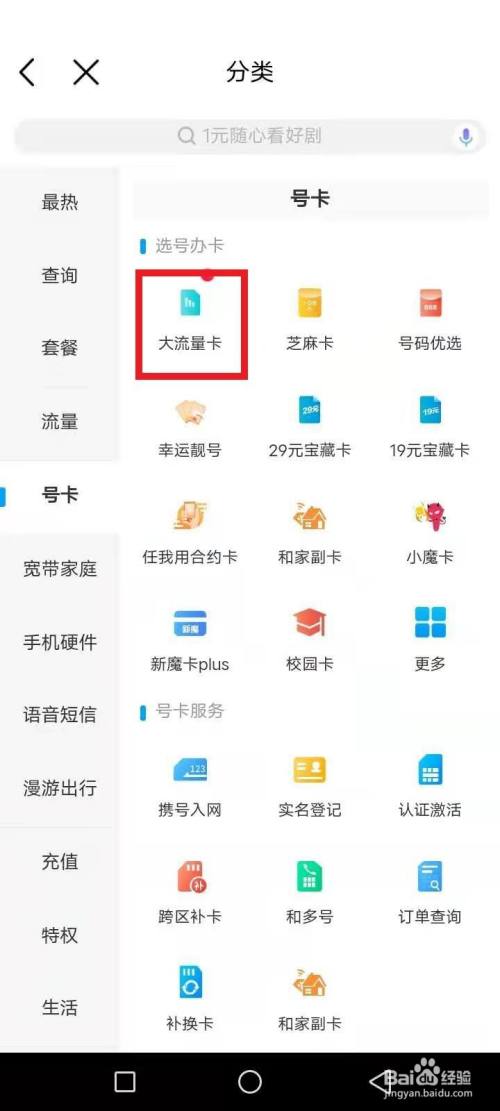 选择号卡,如图红色文本框: