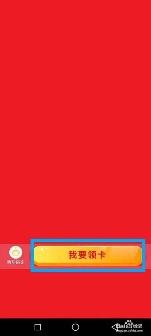 阅读条款,点击我要领卡,如图红色文本框: