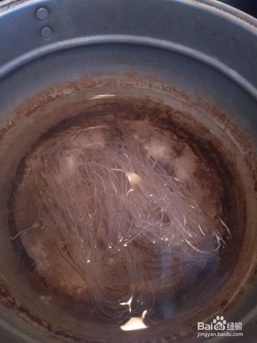 将粉丝先用清水冲一下,然后放入开水中,将粉丝煮熟。
