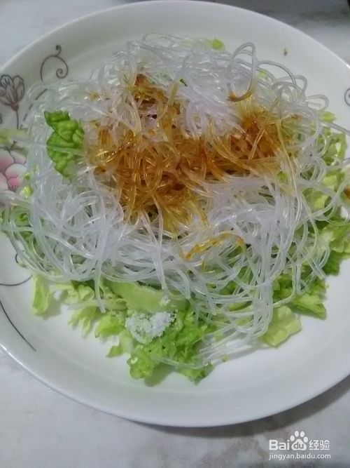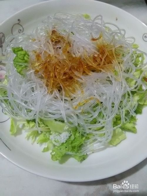如果喜欢吃辣,可以往盘中加入少许辣椒油或辣椒粉,如果不喜欢吃辣,直接将粉丝和白菜丝拌匀,就可以吃了,又酸又甜,清爽可口。