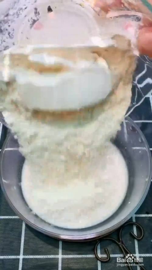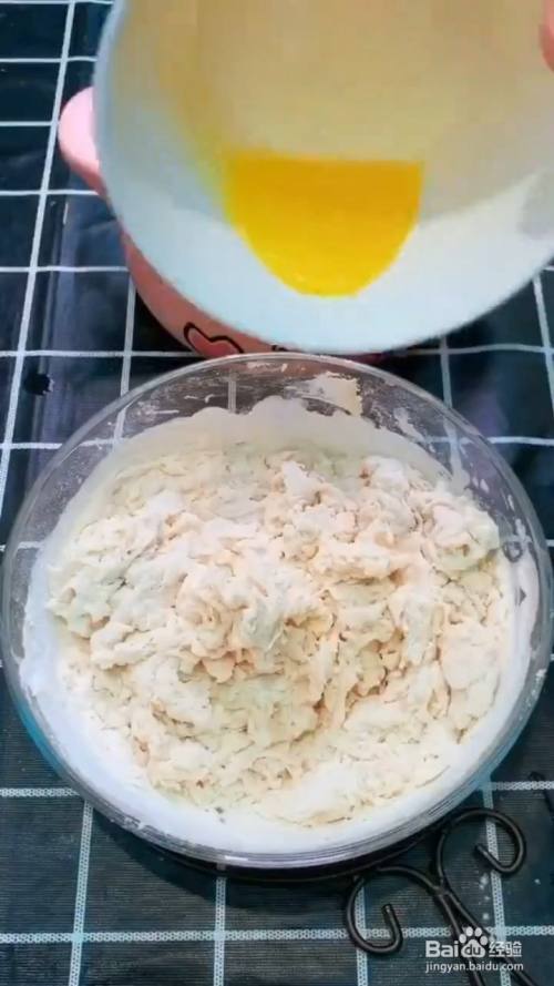 空碗中放入125克温水,再放入酵母粉,白糖,盐,奶粉搅拌均匀;再倒入面粉搅拌均匀。