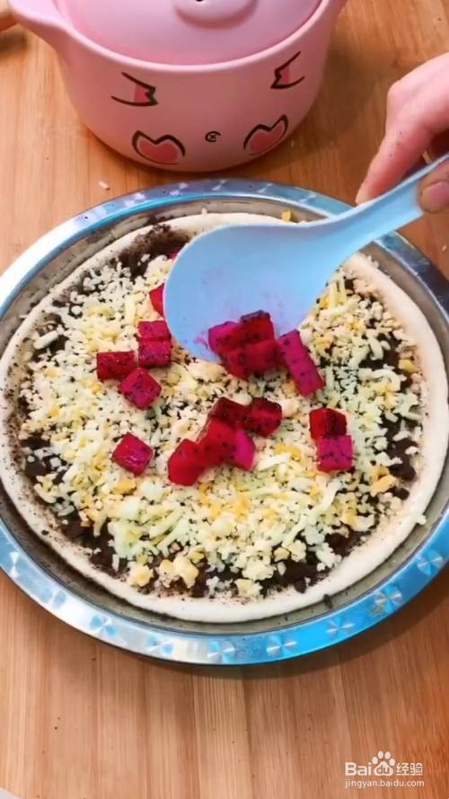 撒上奥利奥饼干碎,芝士碎,再放入水果,撒上芝士碎;再放入烤箱190度烤20分钟即可。