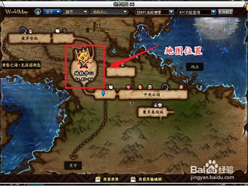 地轨中心地图选择入口有两个。分别在“魔界营地”向右移动和“中央公园”向左移动。