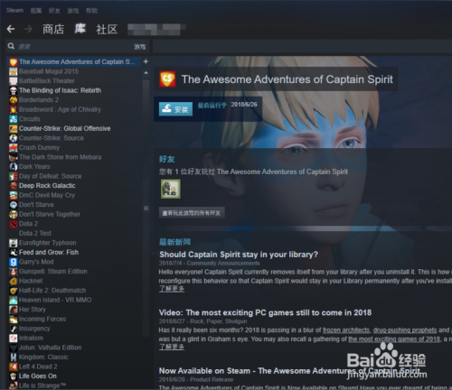 第一步:首先我们需要点击左上方的库选项,然后点击出现的游戏小选项,我们点击后,就会进入自己的游戏库存页面。