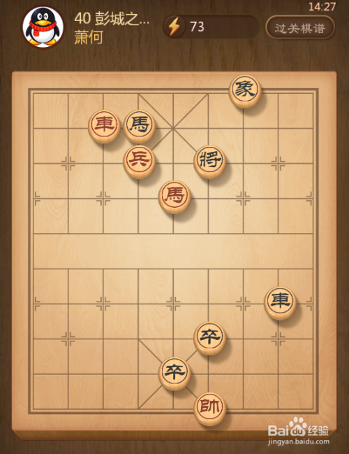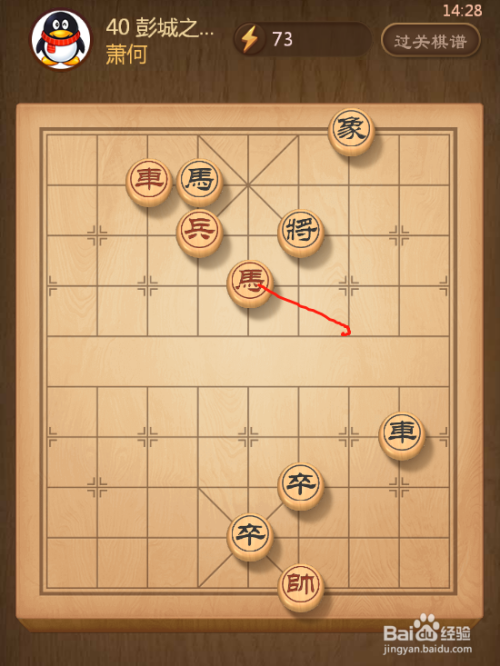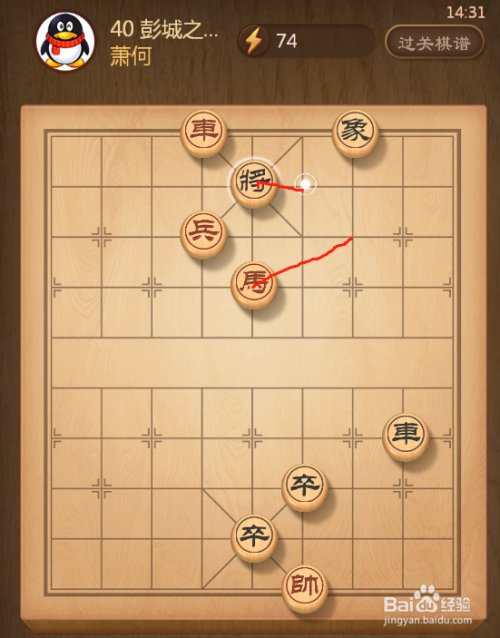 第四十关的步数不多,但是,关键点在于怎么样跳马,黑方只需一步就可以把红方将死,所以救援是救不了的。请看下图。