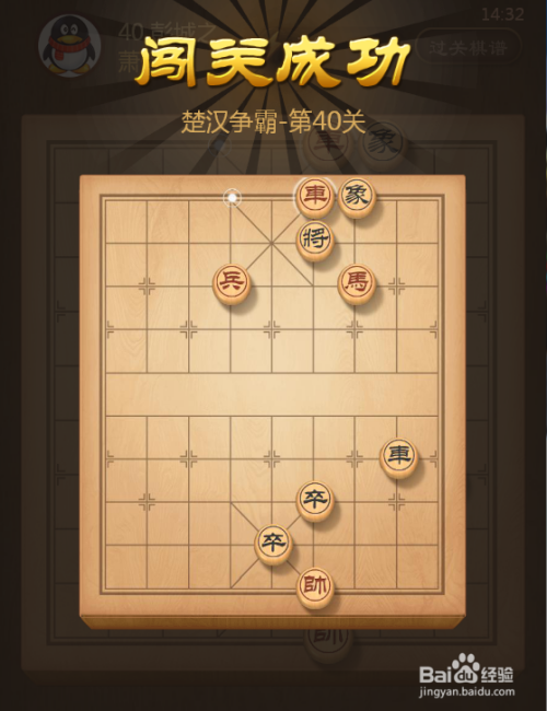 黑车右走到黑帅底下将军,黑帅被将死,系统提示通关成功。
