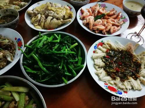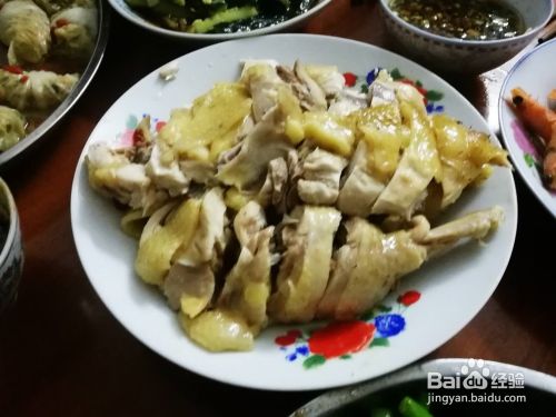 第一道菜白切鸡:白切鸡是广东人的最爱,鲜嫩的鸡肉配上清香的姜葱蘸料,真是美味;无鸡不成宴,广东人摆宴席的第一个菜就是上白切鸡,寓意着来年做生意钱财有剩余。