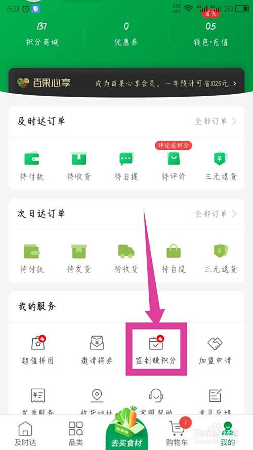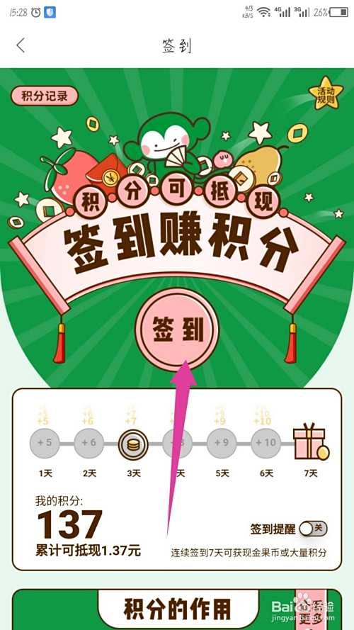 能看到下面签到赚积分选项,点击打开。如图级冷凤所示