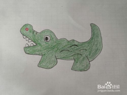 最后用彩铅给鳄鱼图上颜色,这样鳄鱼的简笔画就完成了。