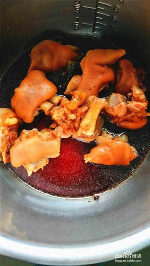 加盖密封,按下豆蹄筋键,待电压力锅的浮子自然下落后,开盖猪蹄软烂。