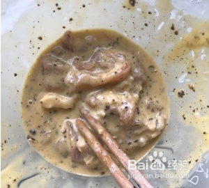 腌制半小时后把肉和面糊伴在一起,稠度如视频所示。注意不要放水,就是要这样稠稠的