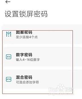 最后在解锁方式界面中,选择想要的解锁方案,设置密码就可以进行设置了。