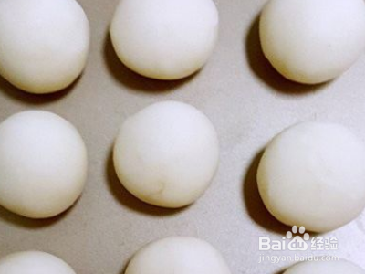 接着我们把搅拌好的面团晾一小会,感觉摸起来不烫手了就可以了,我们开始和面,把面和成团,醒5分钟左右,把醒好的面团分成多个小剂子,再揉圆,取一个面团用手按扁。