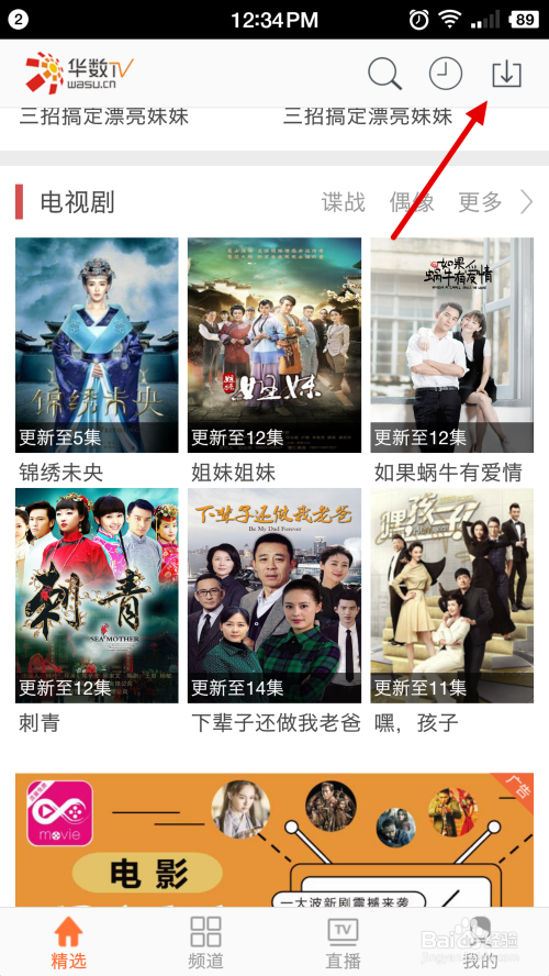 下载完成之后,进入首页点击最上面的下载按钮。