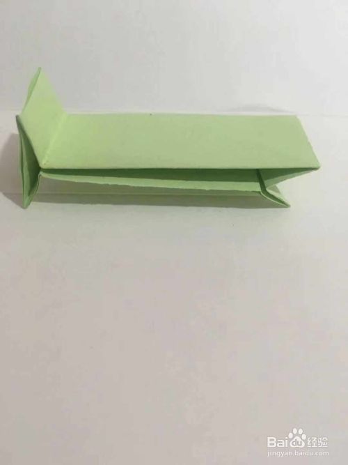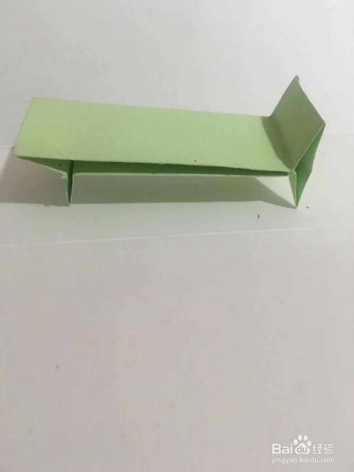 第六步 折好四个双三角之后 把它拿起来 从一头的两个双三角当中向里折一道 再 床头 下面的尖角作为两条床腿 然后再把另外两条床腿折直 这样一张简单漂亮的单人床就折叠完成了