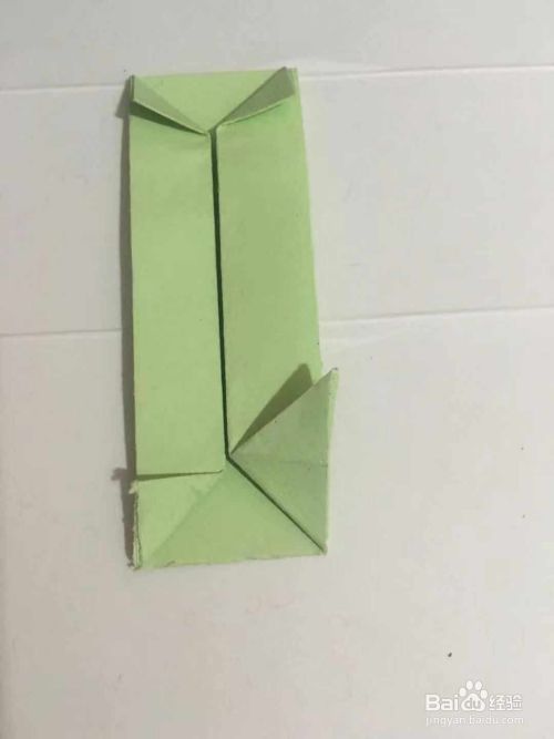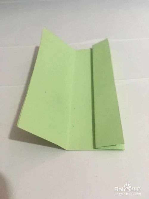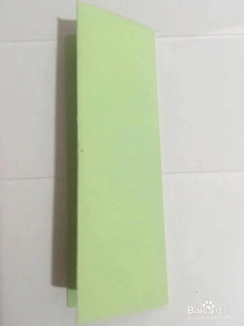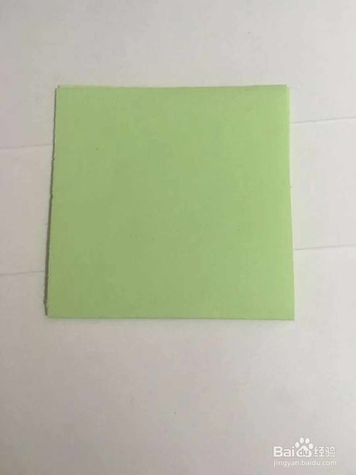 第一步 取一张16厘米长 16厘米宽的长方形粉绿色彩纸 把它竖起来 然后从下向上对边折叠