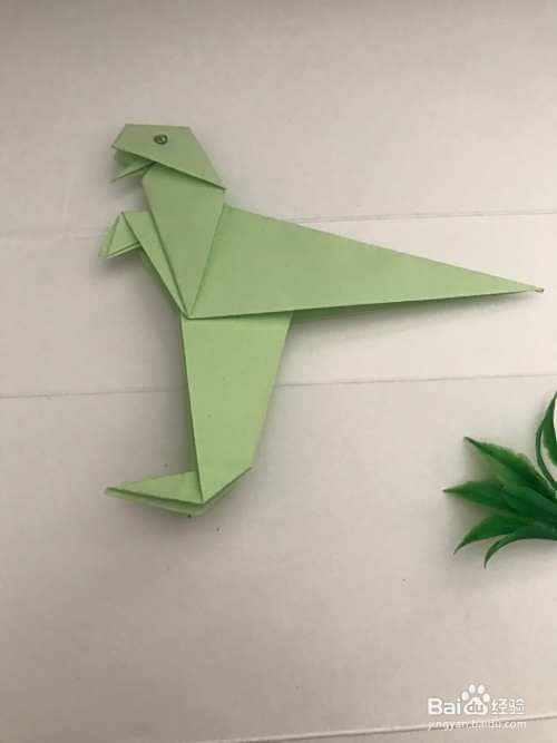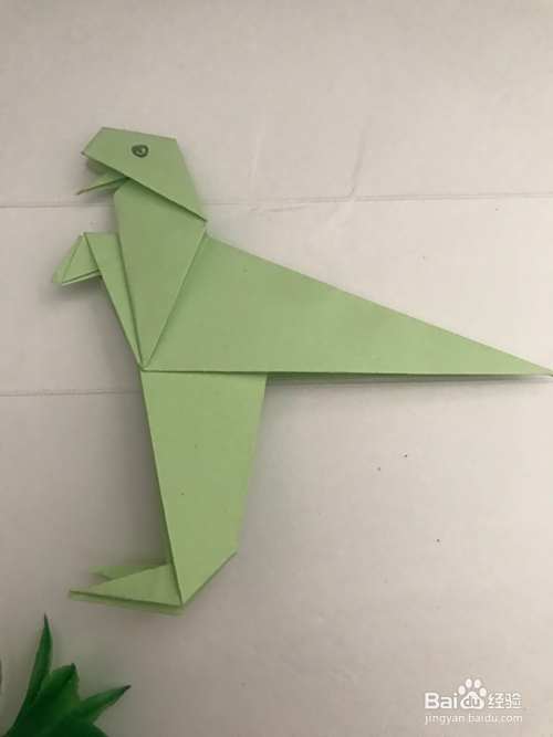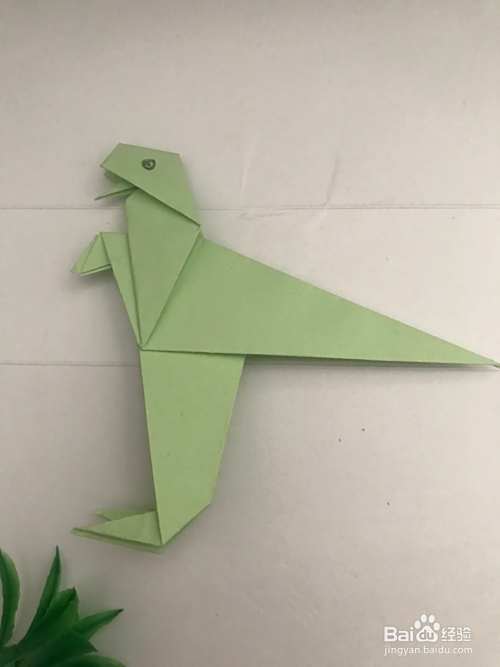 第九步 上半部分和下半部分都折完之后 再把它们拼装在一起 再用固体胶粘一下 然后再给恐龙画上一件 一只酷酷的霸气恐龙就折叠完成了